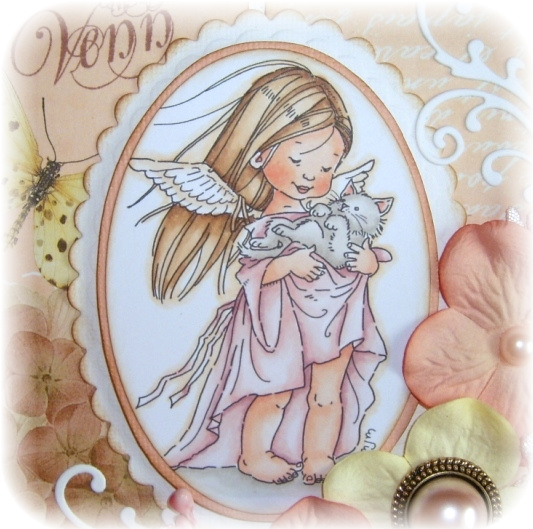 Jeg har brukt en av de nye herlige Sugar Nellie jentene igjen, og som alltid har jeg fargelagt med Copics.